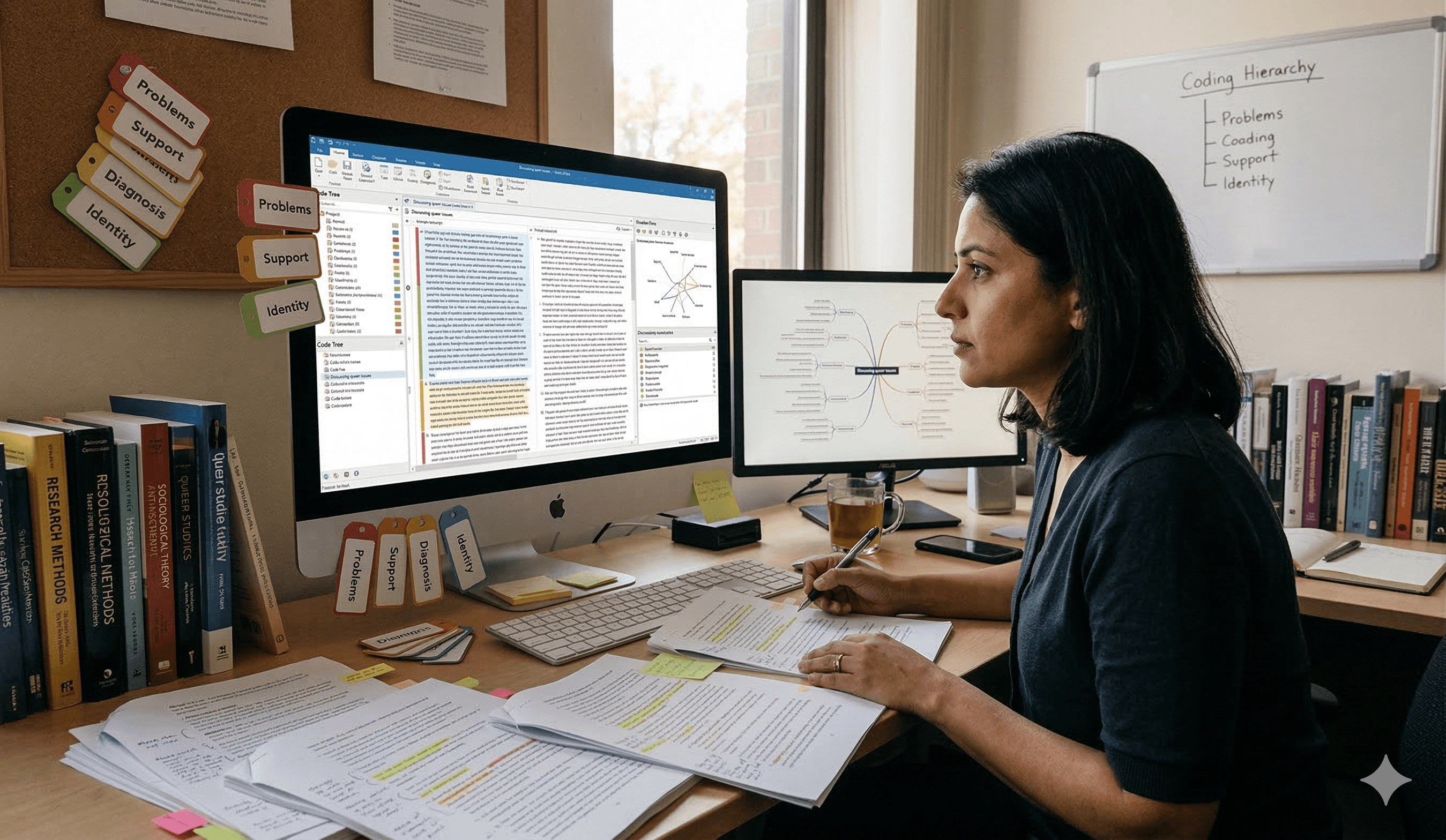 Researchers need to move between excerpts, codes, themes, and comparisons quickly, but most workflows make that slow and fragmented.